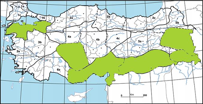 | Güney Marmara Bölümü, Konya Bölümü, Yukarı Murat-Van Bölümü, Hakkari Bölümü, Adana Bölümü, Orta Fırat Bölümü, Dicle Bölümü |