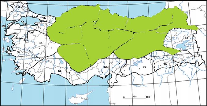 | Batı Karadeniz Bölümü, Orta Karadeniz Bölümü, Doğu Karadeniz Bölümü, Yukarı Sakarya Bölümü, Orta Kızılırmak Bölümü, Orta Kızılırmak Bölümü, Konya Bölümü, Yukarı Fırat Bölümü, Erzurum-Kars Bölümü, |