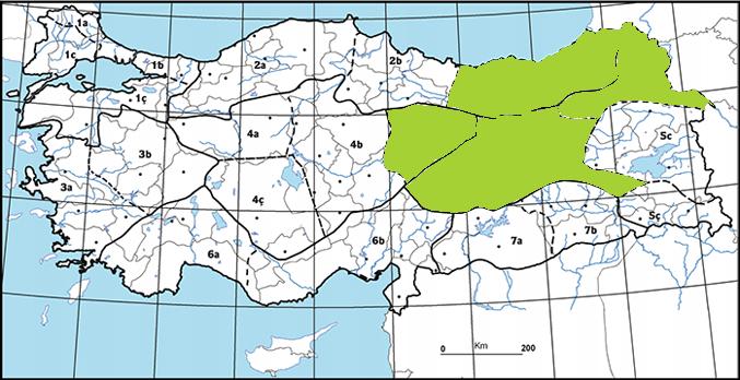 | Doğu Karadeniz Bölümü, Orta Kızılırmak Bölümü, Yukarı Fırat Bölümü, Erzurum-Kars Bölümü, |