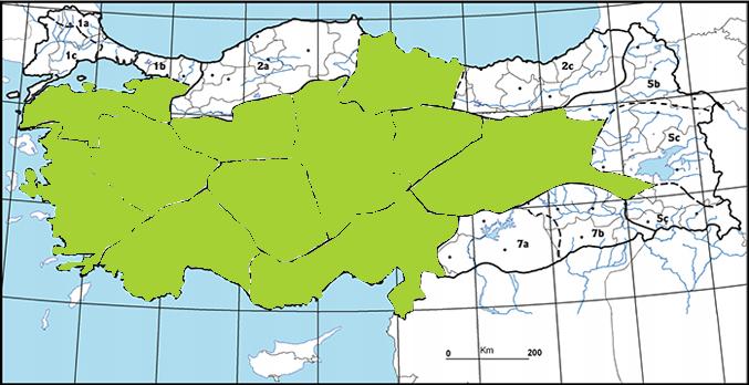 | Güney Marmara Bölümü, Orta Karadeniz Bölümü, Asıl Ege Bölümü, İç Batı Anadolu Bölümü, Yukarı Sakarya Bölümü, Orta Kızılırmak Bölümü, Orta Kızılırmak Bölümü, Konya Bölümü, Yukarı Fırat Bölümü, Antalya Bölümü, Adana Bölümü, |