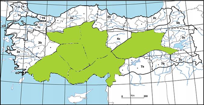 | Yukarı Sakarya Bölümü, Orta Kızılırmak Bölümü, Konya Bölümü, Yukarı Fırat Bölümü, Antalya Bölümü, Adana Bölümü, |