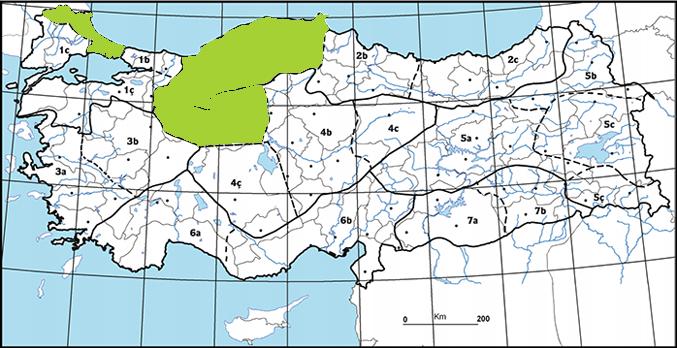| Istranca Bölümü, Batı Karadeniz Bölümü, Yukarı Sakarya Bölümü, |