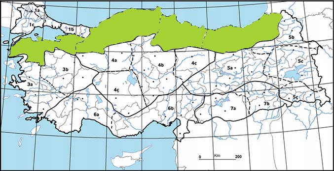 | Güney Marmara Bölümü, Batı Karadeniz Bölümü, Orta Karadeniz Bölümü, Doğu Karadeniz Bölümü, |