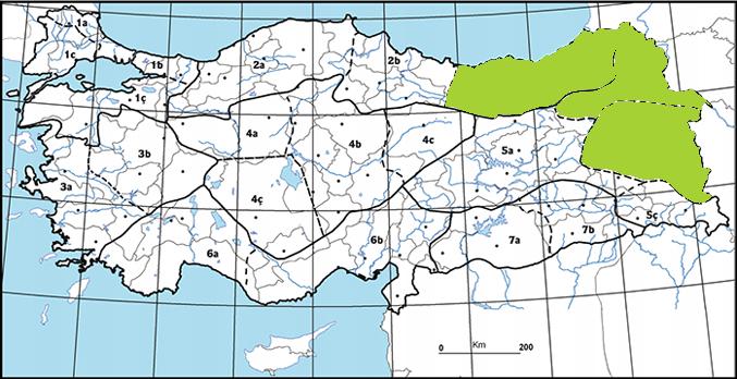| Doğu Karadeniz Bölümü, Erzurum-Kars Bölümü, Yukarı Murat-Van Bölümü, |