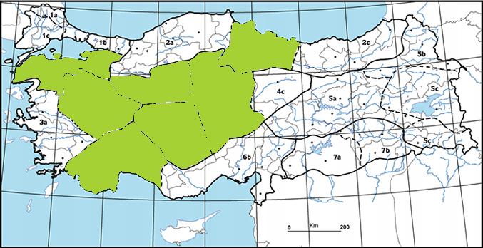 | Güney Marmara Bölümü, Orta Karadeniz Bölümü, İç Batı Anadolu Bölümü, Yukarı Sakarya Bölümü, Orta Kızılırmak Bölümü, Konya Bölümü, Antalya Bölümü, |