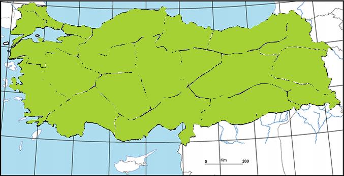 | Istranca Bölümü, Çatalca-Kocaeli Bölümü, Ergene Bölümü, Güney Marmara Bölümü, Batı Karadeniz Bölümü, Orta Karadeniz Bölümü, Doğu Karadeniz Bölümü, Asıl Ege Bölümü, İç Batı Anadolu Bölümü, Yukarı Sakarya Bölümü, Orta Kızılırmak Bölümü, Orta Kızılırmak Bölümü, Konya Bölümü, Yukarı Fırat Bölümü, Erzurum-Kars Bölümü, Yukarı Murat-Van Bölümü, Hakkari Bölümü, Antalya Bölümü, Adana Bölümü, Orta Fırat Bölümü, Dicle Bölümü |